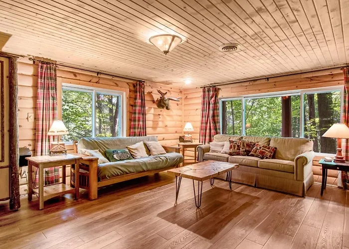 Imagine embarking on a getaway with your closest friends to a peaceful haven nestled in the heart of nature. Picture yourselves surrounded by towering trees, the soothing sounds of wildlife, and a crackling fire pit to gather around in the evenings. Wake up to breathtaking views of the forest outside your window and spend your days exploring the nearby trails, fishing in the tranquil lakes, or simply enjoying each other's company on the cozy porch. It's the perfect escape to reconnect with nature and create unforgettable memories with friends.